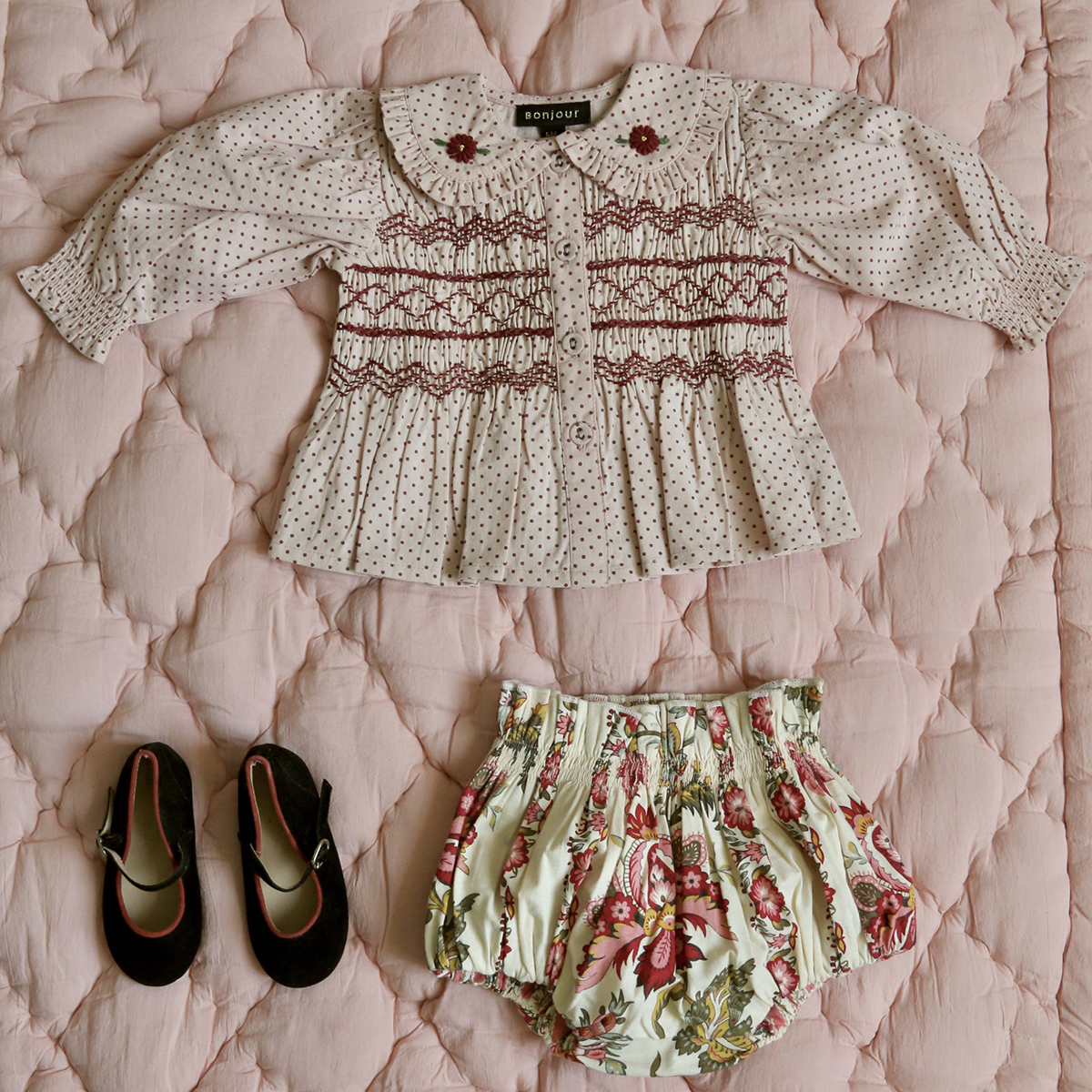(º£À̺ñ)ºÀÁÖ¸£´ÙÀ̾,BONJOUR DIARY BABY SET WITH REVERSIBLE BLOOMER - Pink dot print top / Jacqueline border print bloomer